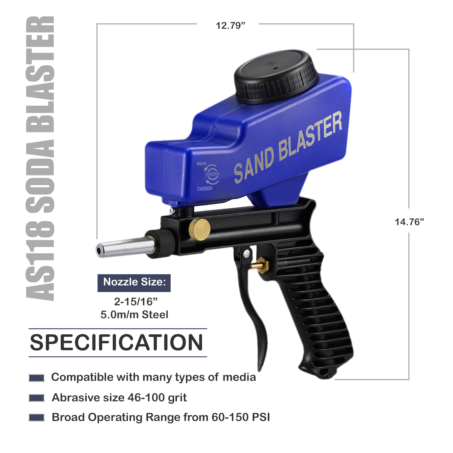 Professional Soda Blaster Kit - 150 PSI Multi-Media with Steel Nozzle (AS118)