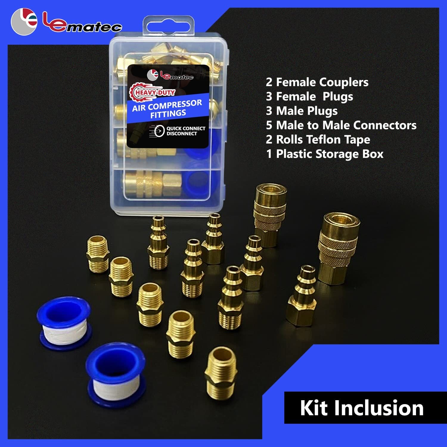 15-Piece Quick Connect Air Compressor Fitting Kit - Professional Grade Brass NPT Connections Set with Storage Case